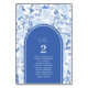 Ce design élégant présente de belles fleurs et oiseaux botaniques en chinoiserie bleu de Delft et blanc, complétées par une typographie moderne.