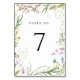 Cadre botanique fleur sauvage élégant, carte numéro de table. La carte est ornée d'élégants fleurs sauvages aquarelles et d'une verdure délicate. Lors de la commande de cartes numériques de table, chaque carte doit être numérotée et commandée individuellement.