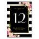 Table Élégant Mariage Floral Black Stripes Numéro de tab