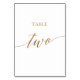 Cette élégante calligraphie dorée table deux numéro de table est parfaite pour un mariage simple. Le design neutre présente une carte minimaliste décorée avec une typographie romantique et fantaisiste de feuille d'or. La carte s'imprime à l'avant et à l'arrière (double face). Les autres numéros de tableau de la collection sont vendus séparément. Remarque : Ce design ne comporte pas de véritable feuille d'or. C'est un graphisme de haute qualité fait pour ressembler à du papier doré.
