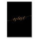 Cette élégante calligraphie noir or neuf numéro de table est parfaite pour un mariage simple. Le design neutre présente une carte minimaliste décorée avec une typographie romantique et fantaisiste de feuille d'or. La carte s'imprime à l'avant et à l'arrière (double face). Les autres numéros de tableau de la collection sont vendus séparément. Remarque : Ce design ne comporte pas de véritable feuille d'or. C'est un graphisme de haute qualité fait pour ressembler à du papier doré.
