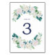 Ce numéro de table de fleurs blanches classique est parfait pour un mariage de printemps. L'élégante décoration florale est composée de roses blanches et d'ivoire, de pivoines et de chrysanthèmes, avec des touches de fleurs d'aquarelle bleu périvent et de feuillage vert. La carte s'imprime à l'avant et à l'arrière (double face). Ajoutez chaque numéro de table dont vous avez besoin à votre panier individuellement.