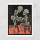 Table for Two postcard: this vintage death art is by Gustave Henri Jossot circa 1904 it depicts two comical cartoon skeletons eyeing one another over a small table, one sitting and the other agressively standing eye to eye, both have their hands upon the table which is tipped up and leaning into the sitting skeletons lap. It should be noted that This image/work is in the public domain because their copyright has expired. This applies to the United States, where Works published prior to 1923 are copyright protected for a maximum of 75 years. See Circular 1 "COPYRIGHT BASICS" PDF from the U.S. Copyright Office. Works published before 1923 (in this case 1904) are now in the public domain.