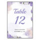 Un élégant numéro de table de mariage au design floral violet doux, ajoutant une touche douce et romantique pour les invités.