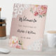 Bienvenue dans une mariage romantique et élégante. Un arrière - plan rose chic en or. Décorée de fleurs roses, de dentelle rose et blanche. Personnalisez et ajoutez les noms de la mariée et du marié ainsi qu'une date.