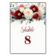 Table Mariage floral de Bourgogne et blanc Numéro de tab