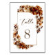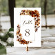Numéro de table du mariage floral orange brûlé rustique.