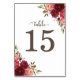 Table Marsala Bourgogne Rouge Roses Floral numéro de tab