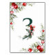 Ce Noel Table Number présente le numéro 3 décoré de baies sauvages et de feuillage d'arbustes dans les couleurs traditionnelles de Noël et décoré d'un cadre de feuillage forestier et de baies rouges juteuses avec arrière - plan blanc. Profite-en.