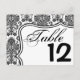 Table Number Card Black White Damask Lace Print Pa