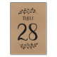 Table number card in rustic laurel and script calligraphy on kraft paper background.