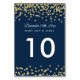 Elegant wedding "Table Number" design with Gold Faux Glitter Confetti Navy Blue and custom table number text.