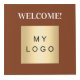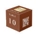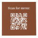 For restaurant, cafe, bar tables, Personalize and add your business logo, table numbers and QR code for your menu. Brown earth coloured background, white text.