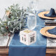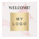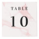 For restaurant, cafe, bar tables, Personalize and add your business logo, table numbers and QR code for your menu. Pink marble print as background, black text.