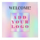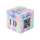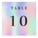 For restaurant, cafe, bar tables, Personalize and add your business logo, table numbers and QR code for your menu. A holographic, pink, purple and mint green background, black text.