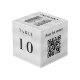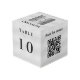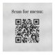 For restaurant, cafe, bar tables, Personalize and add your business logo, table numbers and QR code for your menu. A faux silver looking background, black text.