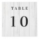 For restaurant, cafe, bar tables, Personalize and add your business logo, table numbers and QR code for your menu. A white rustic wood print as background, black text.