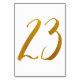 Table Number 23: This casual brush script table number card is set in a faux gold foil.