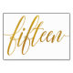Table Number 15: This luxe elegant calligraphy table number card is set in a faux gold foil.