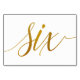 Table Number 6: This luxe elegant calligraphy table number card is set in a faux gold foil.