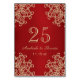 Table Numéro de Mariage de style indien rouge et or