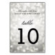 Design élégant "Numéro de table" de mariage avec lumières de Parties scintillant argent et texte de numéro de table personnalisé.