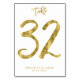 Cartes de numéro de table mariage - Numéro 32 - avec effet feuille d'or (faux, imprimé comme image) et texte personnalisable - vous pouvez ajouter le nom de la mariée et du marié et la date du mariage imprimé sur arrière - plan blanc
