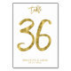 Cartes de numéro de table de mariage - Numéro 36 - avec effet feuille d'or (faux, imprimé comme image) et texte personnalisable - vous pouvez ajouter le nom de la mariée et du marié et la date du mariage imprimé sur l'arrière - plan blanc