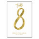 Cartes de numéro de table mariage - Numéro 8 - avec effet feuille d'or (faux, imprimé comme image) et texte personnalisable - vous pouvez ajouter le nom de la mariée et du marié et la date du mariage imprimé sur arrière - plan blanc