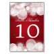 Design élégant "Table Number" de mariage avec motif rouge éclat romantique, noms personnalisés et texte de date. Impressionnez votre famille et vos amis avec ce design élégant et moderne. Entièrement personnalisable ! Facile à utiliser et facile à personnaliser.
