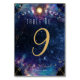 Cartes Numéro De Tableau De Phase De Lune Céleste. Il suffit de changer le nombre et d'avoir quelques cartes de numéro de table métaphysique extraordinaires pour votre mariage. Les cartes présentent une phase de lune brillante au sommet et un arrière - plan de ciel de nuit de galaxie bleue et violette. Des ornements dorés ornent les bords. Les produits correspondants sont dans notre magasin avec ce design.