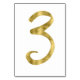 Cartes de numéro de tableau - Numéro 3 - avec effet feuille d'or (faux, imprimé comme image) sur arrière - plan blanc
