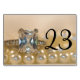 Ajoutez un peu d'élégance à votre réception de mariage, fête de fiançailles ou douche nuptiale avec ces jolies Noms de Table Mariages Princess Diamond Ring et Pearls. Ces élégantes cartes de numéro de table de mariage personnalisées comportent une photo de près d'une bague de fiançailles en diamant coupé par une princesse carré et un collier de perle blanche.