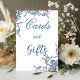 Ce design d'inspiration chinoiserie quelque chose de bleu avant moi a une belle éclaboussure bleue et des fleurs botaniques. Personnalisez la signature des cartes et cadeaux à l'aide de vos informations, et si vous voulez modifier le style et la police du texte, cliquez sur le bouton "Cliquez pour customiser plus loin".