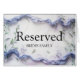 This is a reserved table sign card. It is elegant script calligraphy for fancy wedding party, chic bridal shower, engagement or anniversary. It is classy placement note cards with name of bride and groom family, VIP guests, bridesmaids, groomsmen, best man, maid of honour etc. Text and design can be customized for any invitation card.