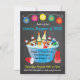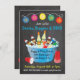 Un barbecue extérieur moderne et amusant ou un pique-nique se réunissent avec une chaîne de lanternes avec les mots "party" épelé et un grand récipient en métal bleu, rempli de glace et une variété de vin, bière et sodas et une grande pile de petites tasses rouges contre un arrière - plan de tableau noir. Idéal pour tout événement estival ! Illustration tirée à la main par McBooboo.