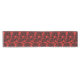 Table runner to accent your table decor is shown in a black and red swirl floral print.