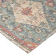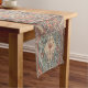 a dramatic table runner with images of persian rugs. lovely carpets in red, rust, ivory and blue.
