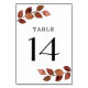 La carte de numéro de tableau s'imprime à l'avant et à l'arrière (recto double). Le design présente une branche d'automne simple en aquarelles rouge et marron. Les articles sont imprimés exactement comme ils apparaissent sur votre écran lorsque vous ajoutez au panier, donc personnalisez et ajoutez chaque numéro de table dont vous avez besoin à votre panier individuellement.