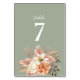 Table Sage Green Peach Floral Mariage Numéro de tableau