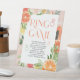 Douche nuptiale Bague Game piédestal panneau tabletop. Ce design d'agrumes tropicaux propose des fontes modernes et élégantes (qui changent facilement de couleur !) et un bouquet de fleurs bleues et d'agrumes tropicaux, dont du citron, de la chaux, de l'orange, du pamplemousse et de la papaye ! . Voir la collection entière pour plus d'articles correspondants !