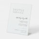 Assurez-vous que vos invités savent où aller avec notre service de navette minimal moderne Signe Mariage. Cette enseigne élégante est dotée d'une typographie épurée et minimaliste, parfaite pour diriger les clients vers le service de navette. Personnalisez-le avec vos détails de mariage pour un ajout harmonieux et élégant à votre événement. Idéal pour les mariages modernes, ce panneau allie fonctionnalité et design chic.
