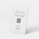 Le panneau de piédestal minimal comporte la calligraphie de script et le code qr.