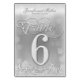 Cette belle et élégante carte de table présente un look parties scintillant argent et est parfaite pour les mariages, les vacances et d'autres lieux. Le set peut aller jusqu'à 50, cependant, vous pouvez me contacter et je peux faire des numéros supplémentaires sur demande. Note : Il s'agit d'une reproduction graphique et ne contient aucune parties scintillant désordonnée. Organisez un événement merveilleux !