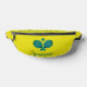 Bag (fanny pack) for ping pong balls with a retro style design of two table tennis rackets and a ping pong ball in turquoise blue with a hypnotic pattern on dark blue background for ping pong lovers and tabletennis players.