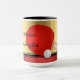 A colourful and elegant mug for those who enjoy Table Tennis (sometimes known as Ping Pong). A white ball and a red paddle are displayed on an elegant ruby red and gold background. Personalize it with a name. The text is easily removed or changed with the template. If other changes are desired (different type font, size, colour, or placement) select "personalize" then select "Edit using Design Tool." The paddle and ball are also part of the template and can, therefore, be deleted or repositioned on the design by using the Design Tool. Other mug styles available. Check out the options on the right.