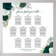 Ce magnifique tableau de sièges mariage comprend 10 tables ornées d'un design floral rustique avec des roses délicatement peints à la main dans les tons vert émeraude et sauge, avec des accents d'eucalyptus feuilles luxuriants et verdure du jardin. L'aménagement peut accueillir jusqu'à 100 personnes, avec 10 places disponibles par table. L'élégant titre de calligraphie de script dit "s'il vous plaît trouvez votre table" et les noms du couple et de leur mariage apparaissent en bas. Ce tableau de sièges est à la fois esthétique et fonctionnel, ce qui permet aux invités de repérer facilement leurs sièges désignés tout en ajoutant à la beauté globale de votre réception de mariage.