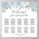 Cet élégant tableau de 10 places mariage, conçu pour accueillir 100 personnes avec 10 places par table, présente un superbe design floral avec des roses aquarellés à la main et des fleurs dans les tons bleu poussiéreux, entouré de feuilles verts sauge et feuillage. Le titre, écrit en calligraphie de script élégante, dit : "Bienvenue ! S'il vous plaît trouver votre table" et il y a aussi de l'espace pour les noms du couple et la date du mariage en bas. C'est une façon fantastique d'accueillir vos invités à la réception et de les guider vers leur siège désigné.