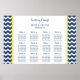 Elégante et contemporaine personnalisable douze tables de table pour mariage dans bleu marine foncé moderne, jaune clair et blanc amusant et rétro chevron zigzags bandes motif. Customisez avec le nom de vos invités pour créer un tableau de sièges unique pour votre mariage.