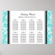 Elégante et contemporaine personnalisable huit tables de sièges pour mariage dans moderne turquoise turquoise bleu, noir et blanc classique damassé motif vintage. Customisez avec le nom de vos invités pour créer un tableau de sièges unique pour votre mariage. Contactez-nous pour un tableau personnalisé pour un nombre différent de clients.